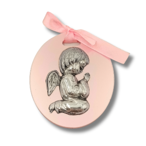 Medalha de Berço Acrílico H5,5 cm Anjo 1,5gr Rosa