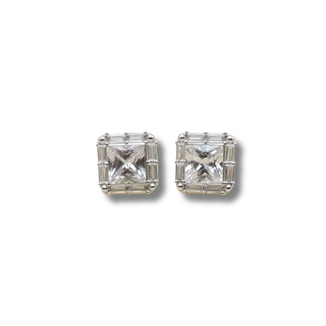 Brincos Prata Zirconia Quadrada