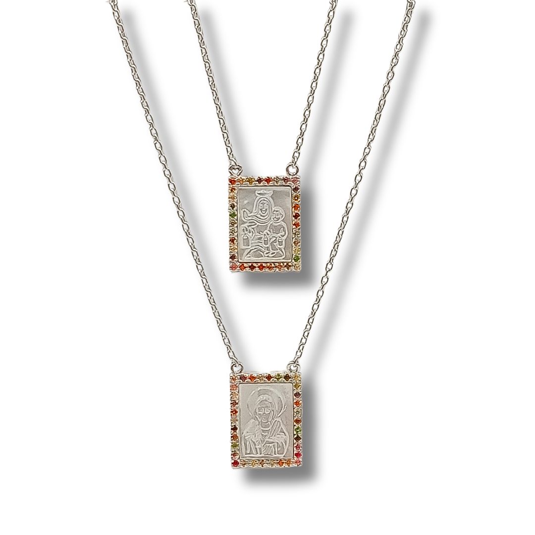 Escapulário Prata Madrepérola / Pedras Colors