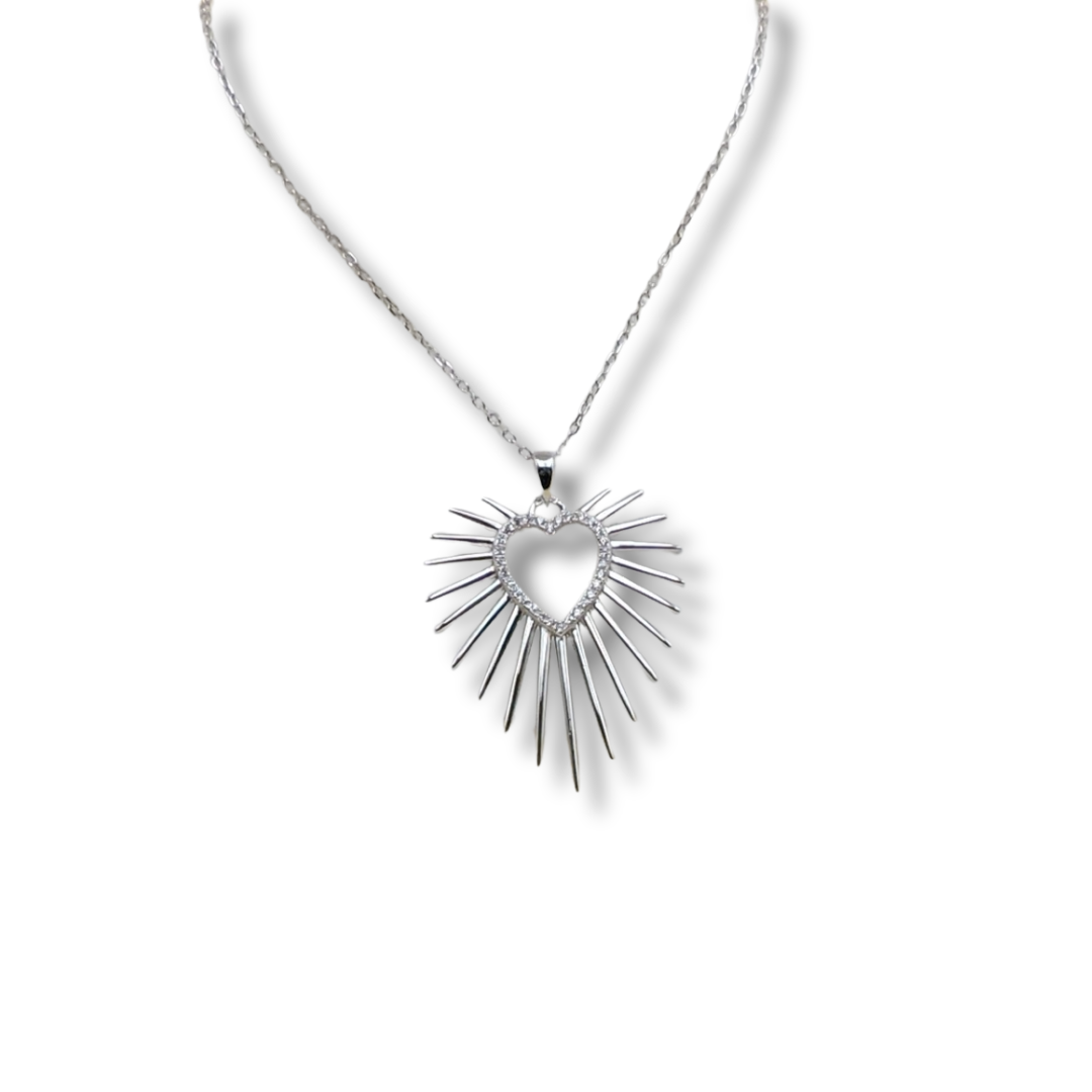 Colar Prata Coração raios de sol