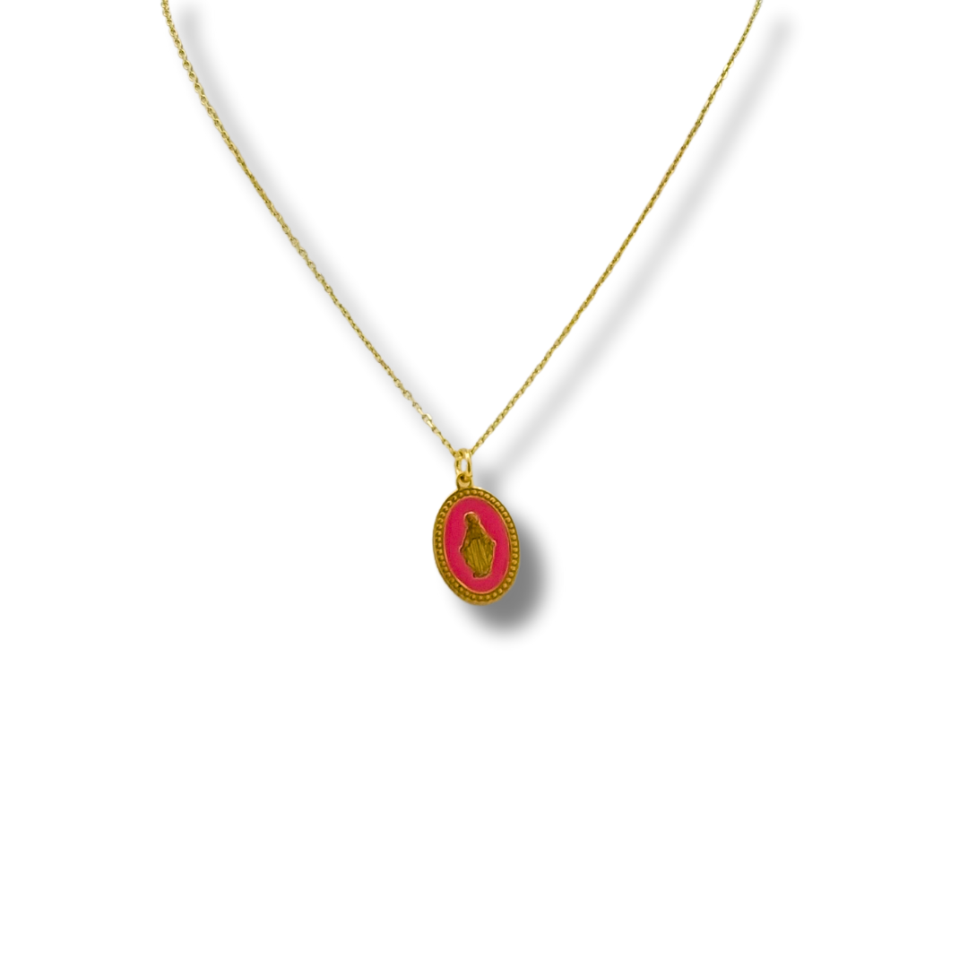 Colar Prata Dourada Medalha Rosa
