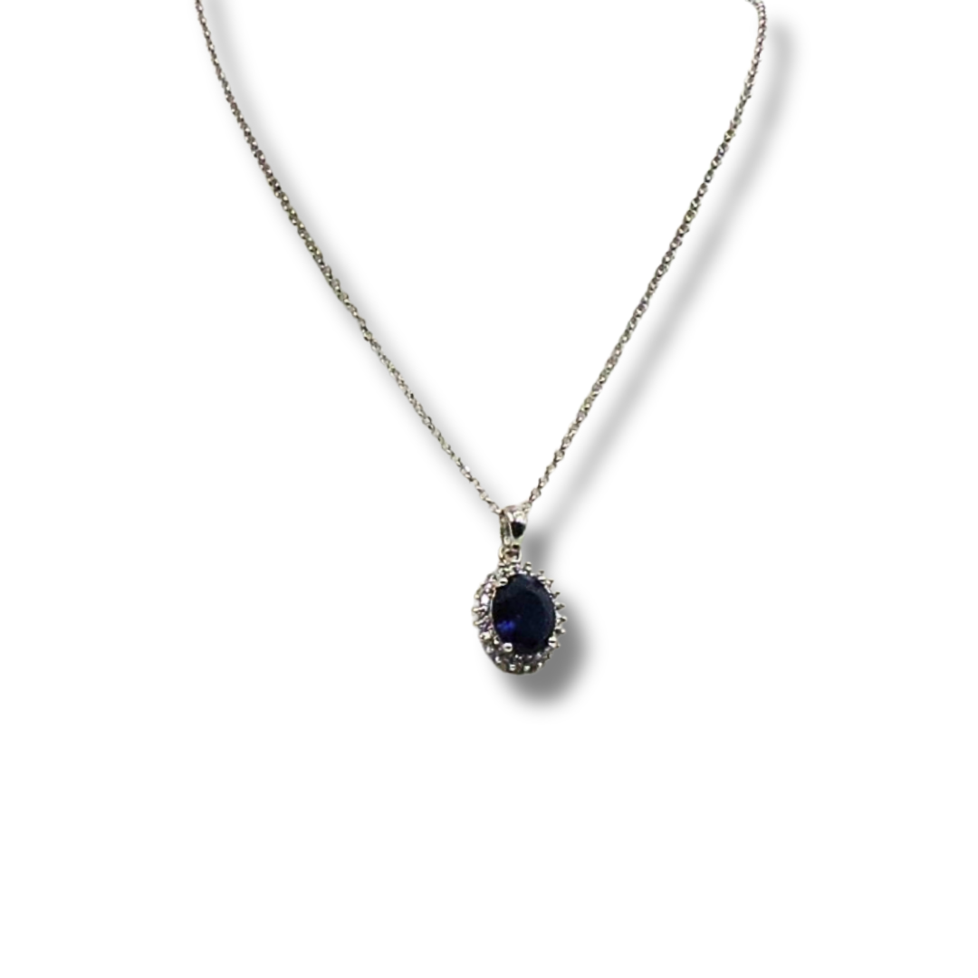 Colar Prata Pendentes Lady Di Azul 10x8cm