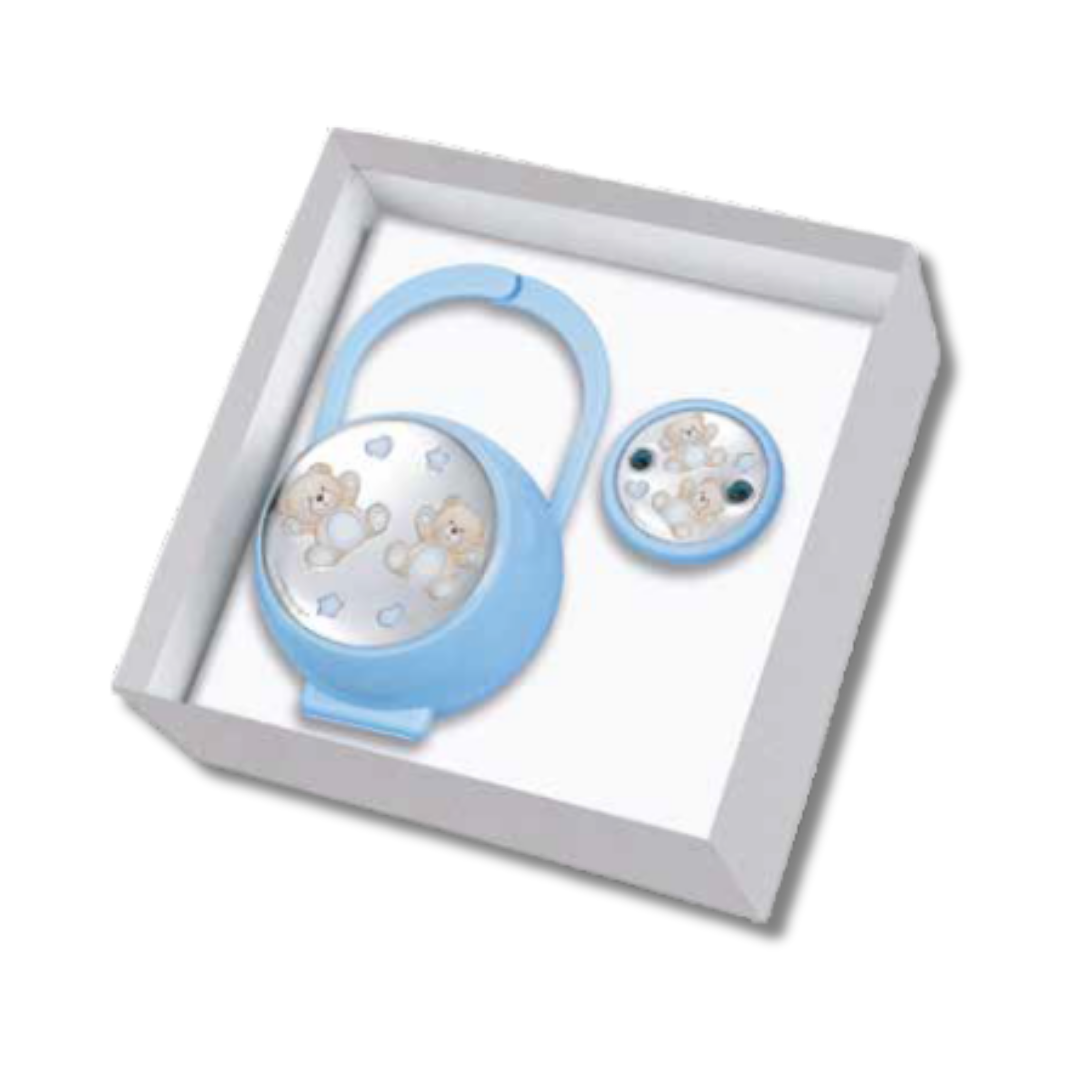 Conj. 2 peças (clip + porta chupeta) URSO azul