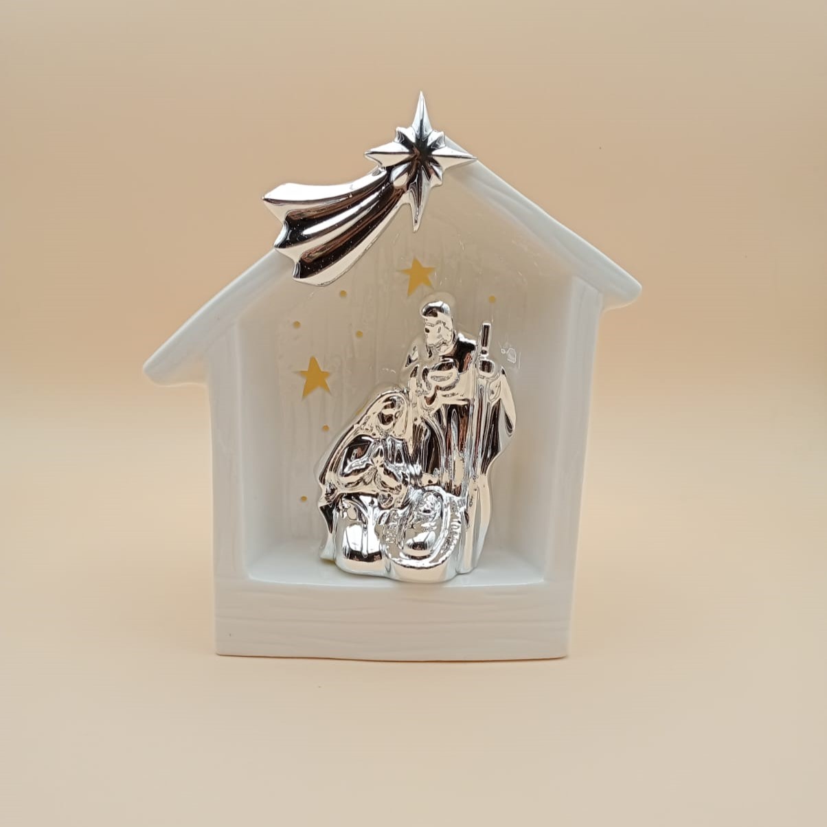 NT81/1B - Presépio Sagrada Familia Branco/Prateado H13 cm
