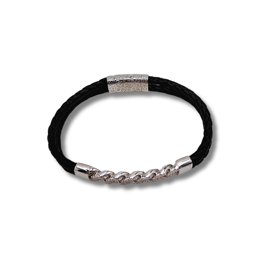 Pulseira Prata Pele / Barbela zirc. cravej. 20cm